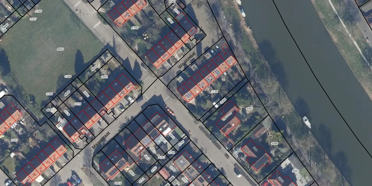Het perceel waarop Waalstraat 44 staat heeft een oppervlakte van 945 m². Dit is een groot perceel. De perceeloppervlakte wordt geregistreerd door het Kadaster. Gedetailleerde informatie over de maten van dit perceel kunt u vinden in het rapport Kadastrale kaart met maatvoering van Waalstraat 44.