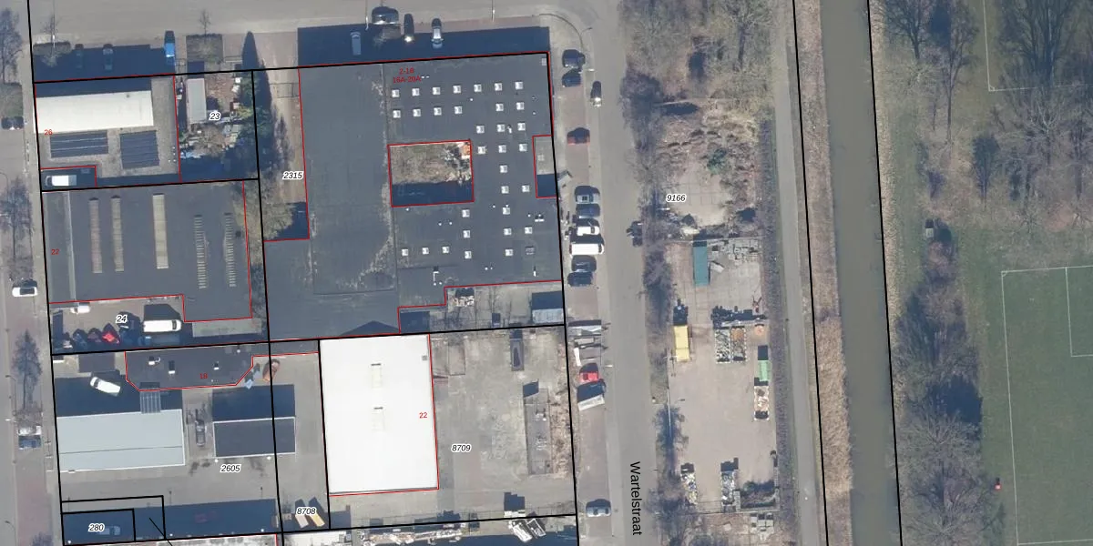 Het perceel waarop Wartelstraat 14-B staat heeft een oppervlakte van 2711 m². Dit is een zeer groot perceel. De perceeloppervlakte wordt geregistreerd door het Kadaster. Gedetailleerde informatie over de maten van dit perceel kunt u vinden in het rapport Kadastrale kaart met maatvoering van Wartelstraat 14-B.