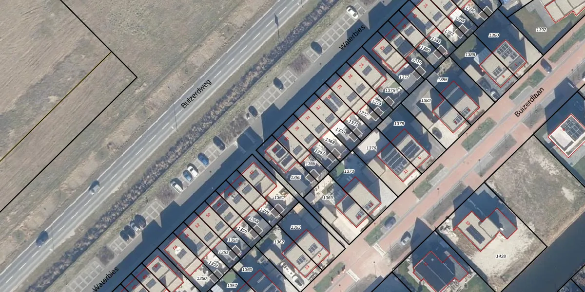 Gebruik de zoekbalk of klik op een perceel voor informatie over de adressen binnen dit perceel.