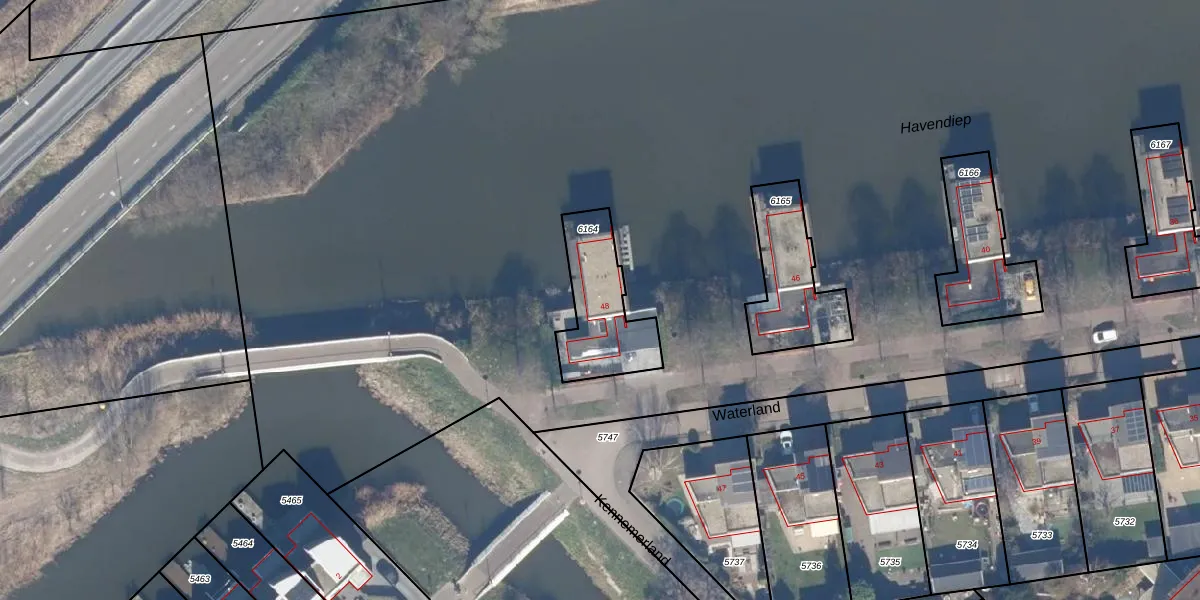 Het perceel waarop Waterland 48 staat heeft een oppervlakte van 301 m². Dit is een groot perceel. De perceeloppervlakte wordt geregistreerd door het Kadaster. Gedetailleerde informatie over de maten van dit perceel kunt u vinden in het rapport Kadastrale kaart met maatvoering van Waterland 48.