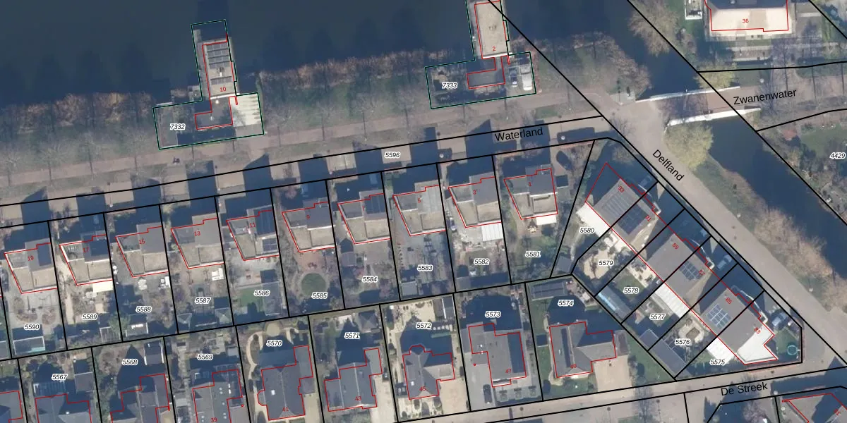 Het perceel waarop Waterland 5 staat heeft een oppervlakte van 410 m². Dit is een groot perceel. De perceeloppervlakte wordt geregistreerd door het Kadaster. Gedetailleerde informatie over de maten van dit perceel kunt u vinden in het rapport Kadastrale kaart met maatvoering van Waterland 5.