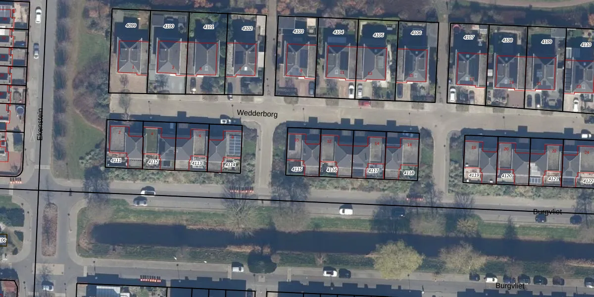 Het perceel waarop Wedderborg 10 staat heeft een oppervlakte van 180 m². Dit is een middelgroot perceel. De perceeloppervlakte wordt geregistreerd door het Kadaster. Gedetailleerde informatie over de maten van dit perceel kunt u vinden in het rapport Kadastrale kaart met maatvoering van Wedderborg 10.
