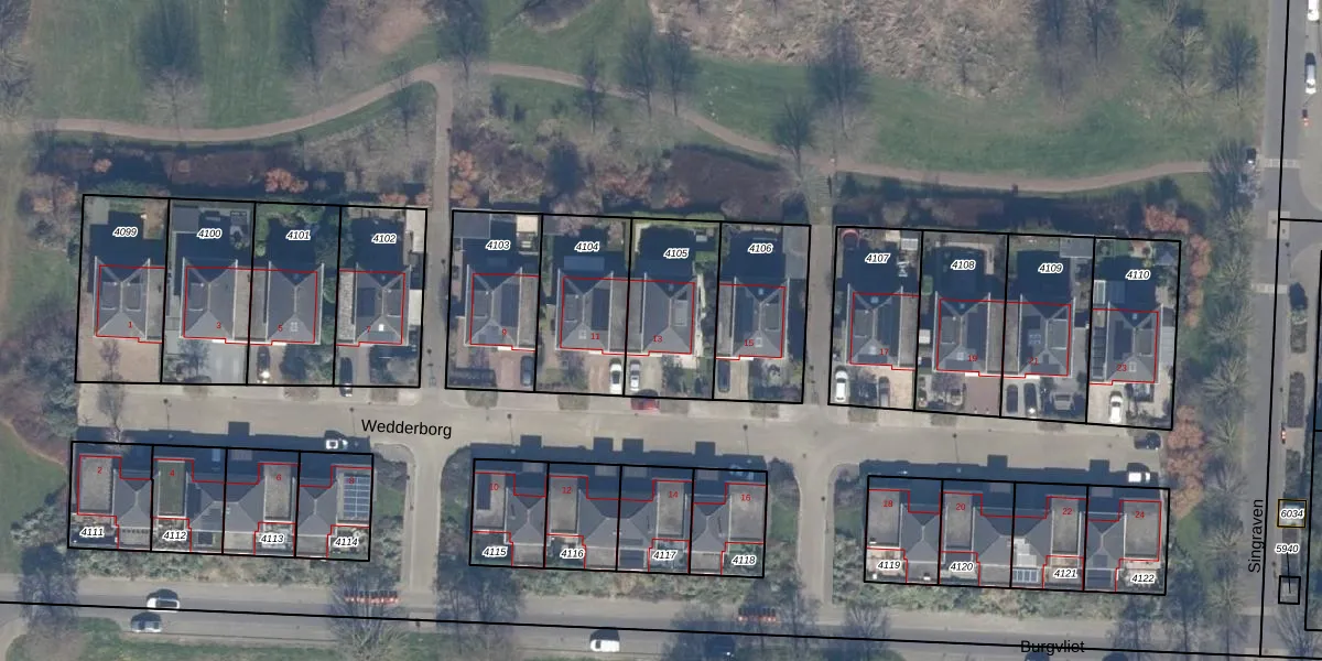 Het perceel waarop Wedderborg 13 staat heeft een oppervlakte van 364 m². Dit is een groot perceel. De perceeloppervlakte wordt geregistreerd door het Kadaster. Gedetailleerde informatie over de maten van dit perceel kunt u vinden in het rapport Kadastrale kaart met maatvoering van Wedderborg 13.