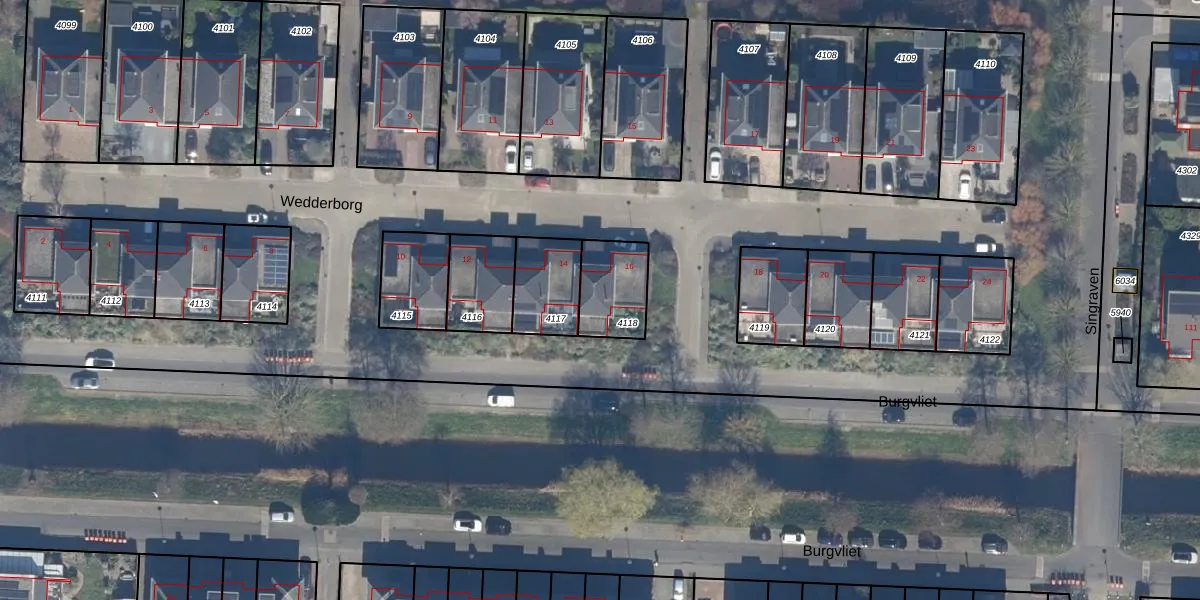 Gebruik de zoekbalk of klik op een perceel voor informatie over de adressen binnen dit perceel.
