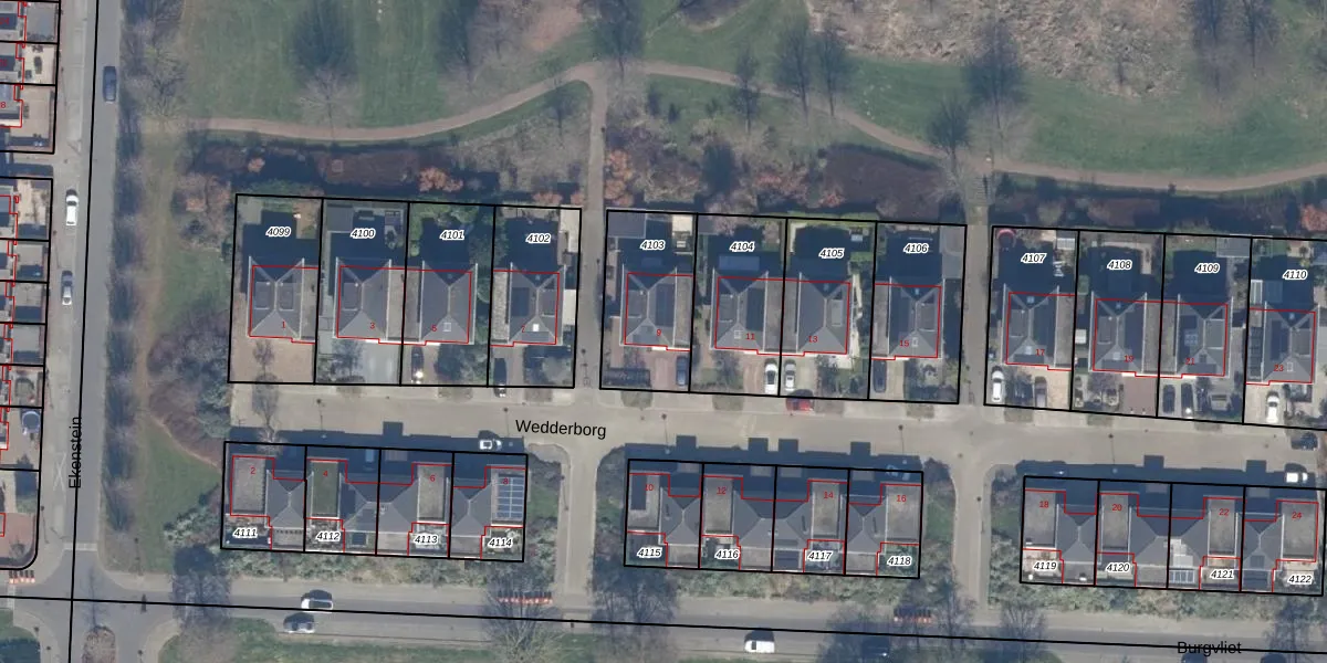 Het perceel waarop Wedderborg 9 staat heeft een oppervlakte van 364 m². Dit is een groot perceel. De perceeloppervlakte wordt geregistreerd door het Kadaster. Gedetailleerde informatie over de maten van dit perceel kunt u vinden in het rapport Kadastrale kaart met maatvoering van Wedderborg 9.