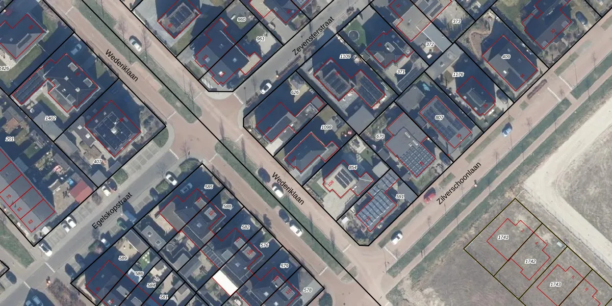 Wederiklaan 107 is gelegen op kadastraal perceel LLS00A1098. Deze kadastrale aanduiding is uniek en wordt gebruikt door het Kadaster om eigendomsrechten en andere zakelijke rechten vast te leggen. Het perceel maakt onderdeel uit van de kadastrale gemeente Lelystad.