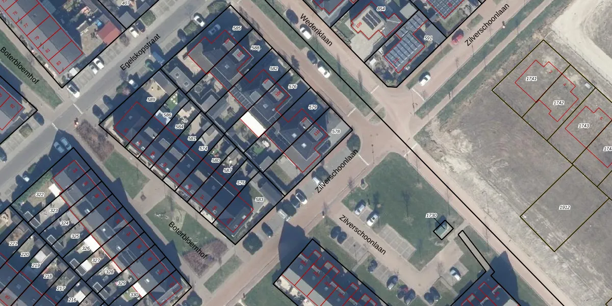 Gebruik de zoekbalk of klik op een perceel voor informatie over de adressen binnen dit perceel.