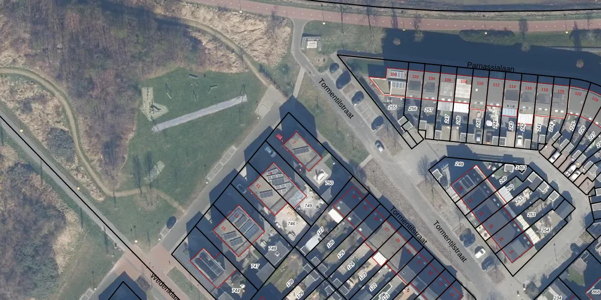 Het perceel waarop het adres ligt is LLS00-A-750. De afkorting 'LLS00' staat voor kadastrale gemeente Lelystad. De gemiddelde perceelgrootte in Lelystad is 2,1 ha. Dit perceel is kleiner: de perceeloppervlakte bedraagt 374 m². Het grootste perceel in de kadastrale gemeente is 78,50 km². Het kleinste perceel heeft een oppervlakte van 0 m². Dit is het enige adres dat aanwezig is op het perceel. De huidige grenzen van het perceel zijn digitaal in de Basisregistratie Kadaster (BRK) geregistreerd op 10-01-2020.