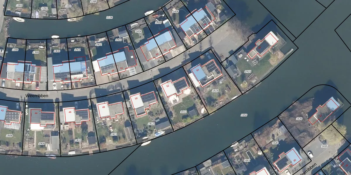 Het perceel waarop Weerribben 52 staat heeft een oppervlakte van 637 m². Dit is een groot perceel. De perceeloppervlakte wordt geregistreerd door het Kadaster. Gedetailleerde informatie over de maten van dit perceel kunt u vinden in het rapport Kadastrale kaart met maatvoering van Weerribben 52.