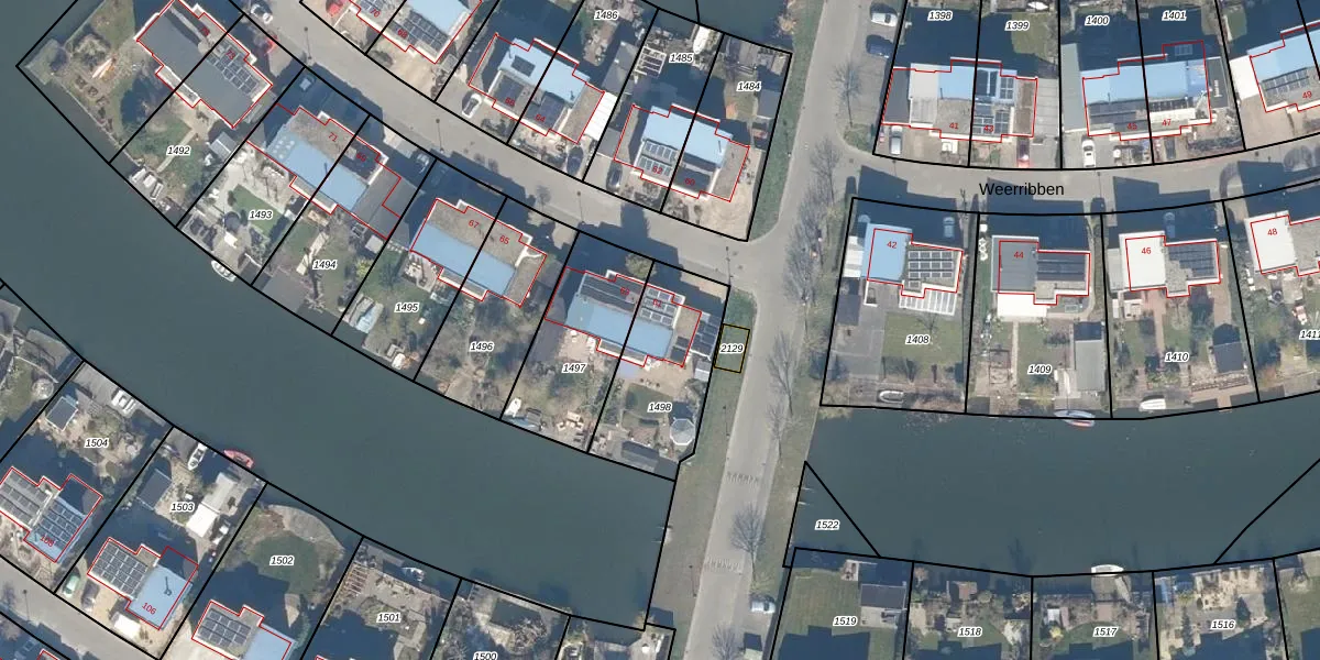 Het perceel waarop Weerribben 61 staat heeft een oppervlakte van 424 m². Dit is een groot perceel. De perceeloppervlakte wordt geregistreerd door het Kadaster. Gedetailleerde informatie over de maten van dit perceel kunt u vinden in het rapport Kadastrale kaart met maatvoering van Weerribben 61.