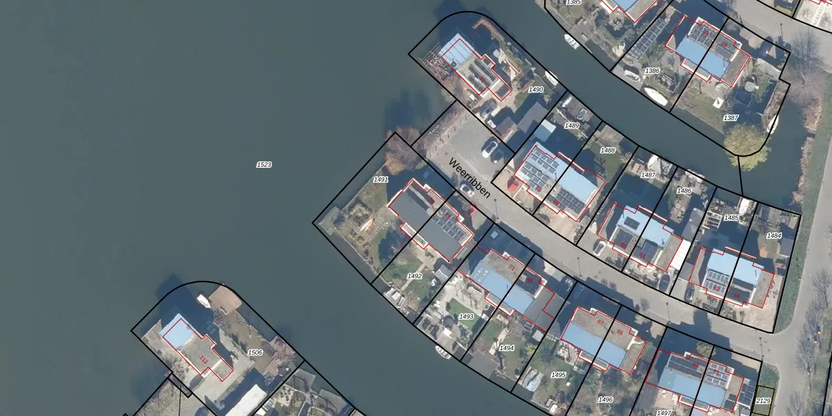 Het perceel waarop Weerribben 75 staat heeft een oppervlakte van 608 m². Dit is een groot perceel. De perceeloppervlakte wordt geregistreerd door het Kadaster. Gedetailleerde informatie over de maten van dit perceel kunt u vinden in het rapport Kadastrale kaart met maatvoering van Weerribben 75.