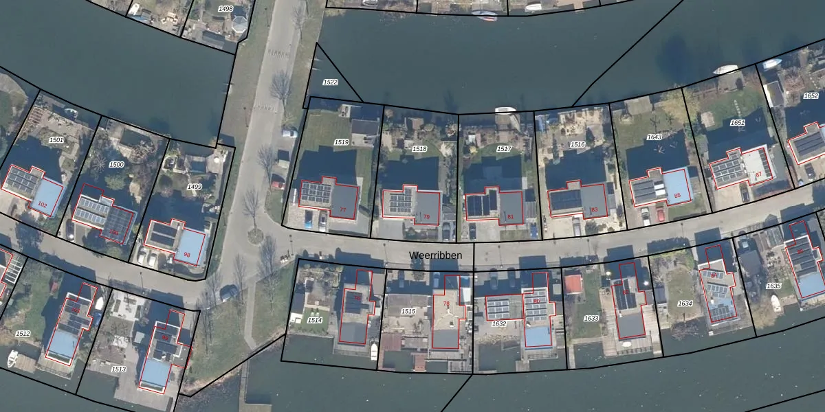 Gebruik de zoekbalk of klik op een perceel voor informatie over de adressen binnen dit perceel.