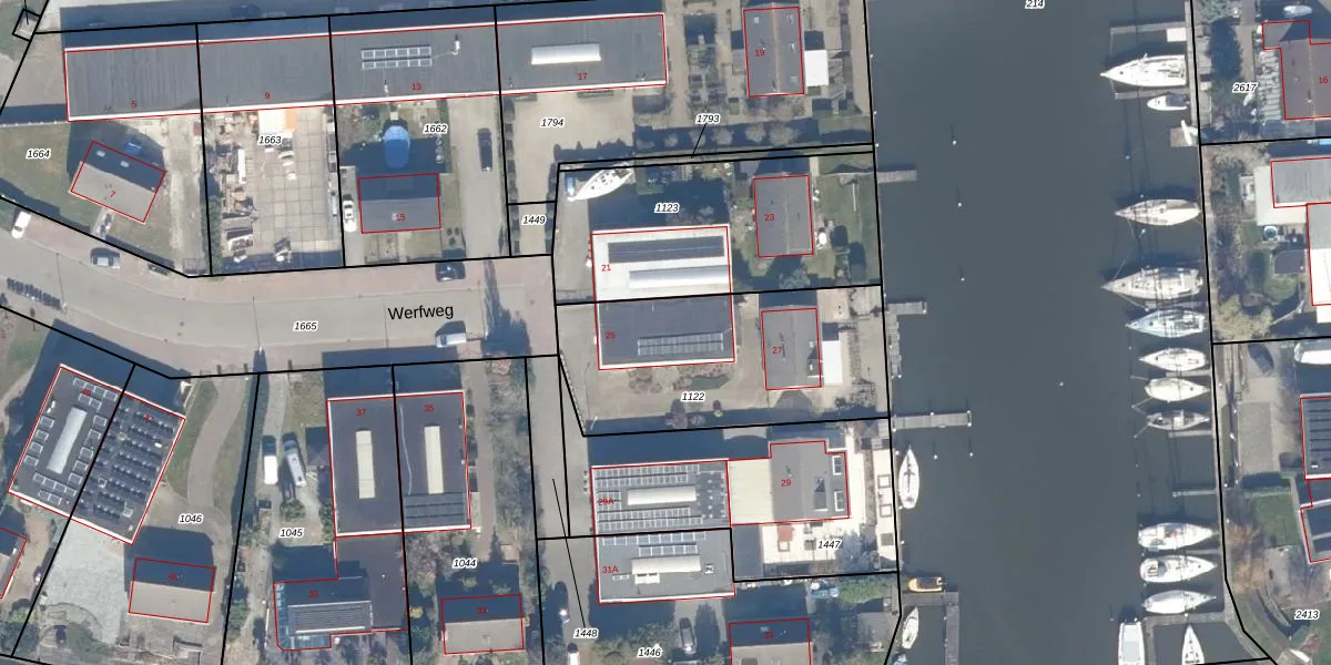 Het perceel waarop Werfweg 25 staat heeft een oppervlakte van 963 m². Dit is een groot perceel. De perceeloppervlakte wordt geregistreerd door het Kadaster. Gedetailleerde informatie over de maten van dit perceel kunt u vinden in het rapport Kadastrale kaart met maatvoering van Werfweg 25.