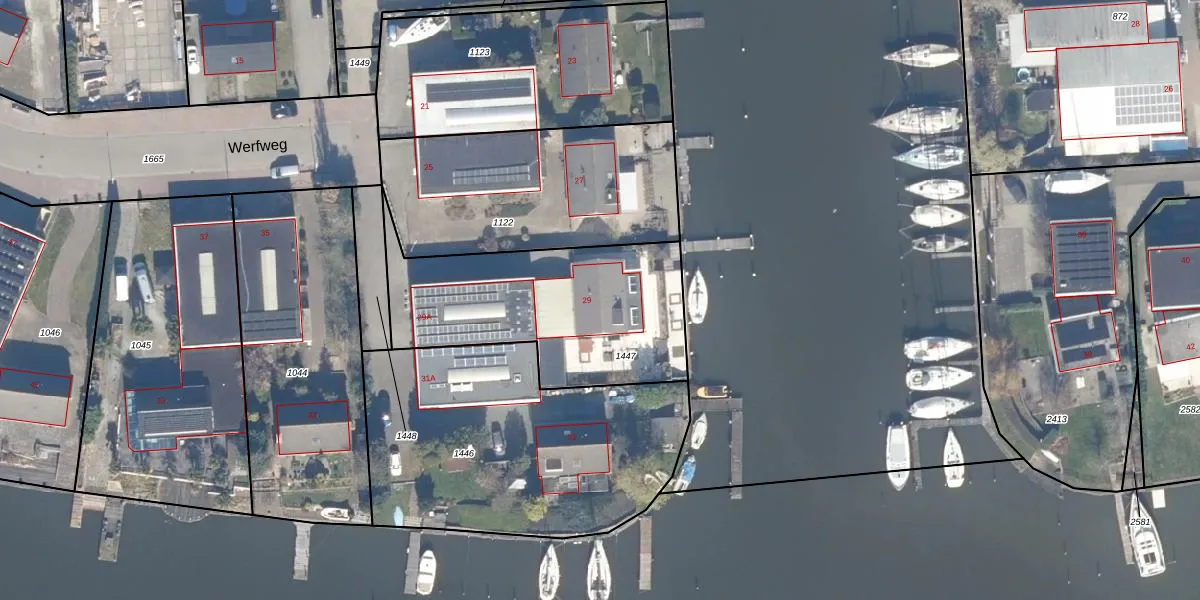Het perceel waarop Werfweg 29 staat heeft een oppervlakte van 961 m². Dit is een groot perceel. De perceeloppervlakte wordt geregistreerd door het Kadaster. Gedetailleerde informatie over de maten van dit perceel kunt u vinden in het rapport Kadastrale kaart met maatvoering van Werfweg 29.