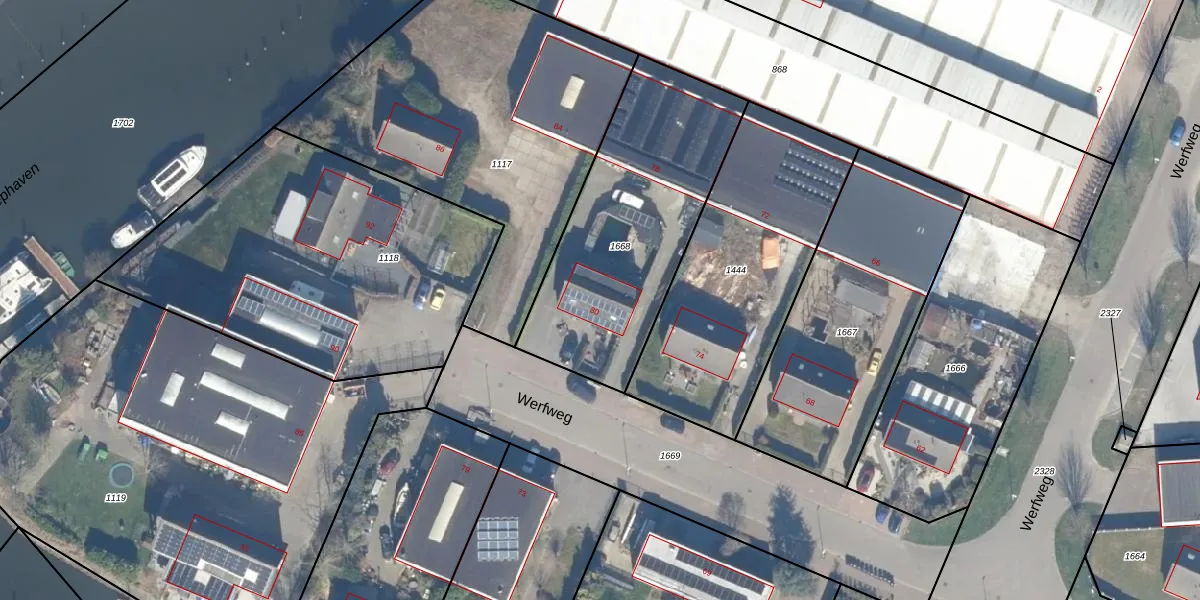 Werfweg 80 is gelegen op kadastraal perceel LLS00N1668. Deze kadastrale aanduiding is uniek en wordt gebruikt door het Kadaster om eigendomsrechten en andere zakelijke rechten vast te leggen. Het perceel maakt onderdeel uit van de kadastrale gemeente Lelystad.