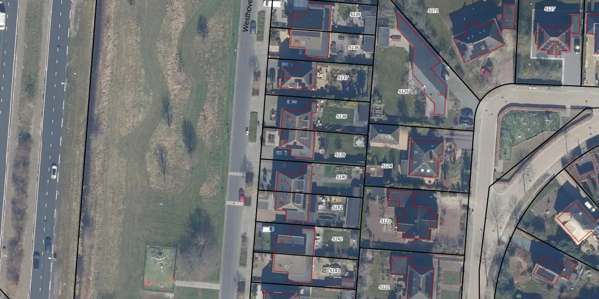 Het perceel waarop Westhoven 84 staat heeft een oppervlakte van 373 m². Dit is een groot perceel. De perceeloppervlakte wordt geregistreerd door het Kadaster. Gedetailleerde informatie over de maten van dit perceel kunt u vinden in het rapport Kadastrale kaart met maatvoering van Westhoven 84.