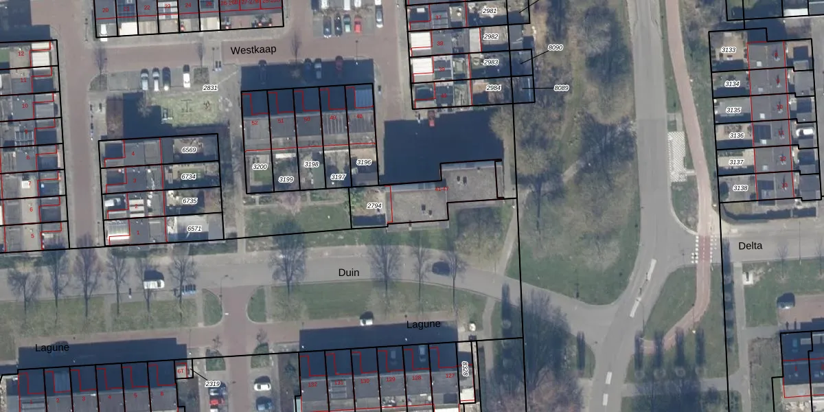 Het perceel waarop Westkaap 47 staat heeft een oppervlakte van 355 m². Dit is een groot perceel. De perceeloppervlakte wordt geregistreerd door het Kadaster. Gedetailleerde informatie over de maten van dit perceel kunt u vinden in het rapport Kadastrale kaart met maatvoering van Westkaap 47.