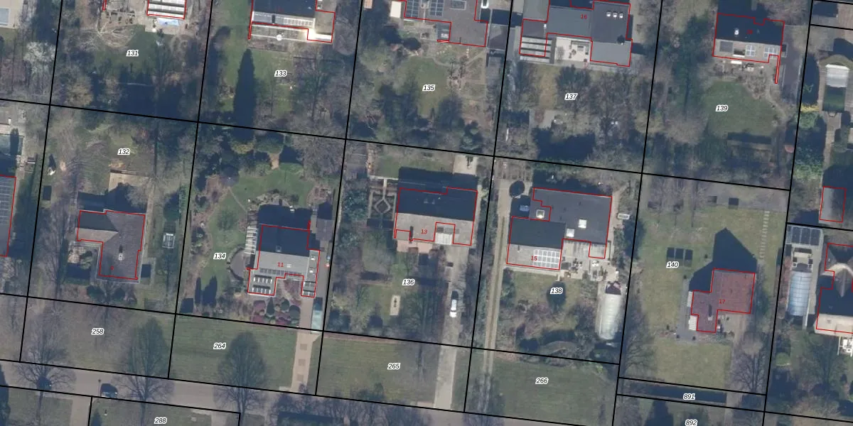 Het perceel waarop Wildbaan 13 staat heeft een oppervlakte van 1583 m². Dit is een zeer groot perceel. De perceeloppervlakte wordt geregistreerd door het Kadaster. Gedetailleerde informatie over de maten van dit perceel kunt u vinden in het rapport Kadastrale kaart met maatvoering van Wildbaan 13.
