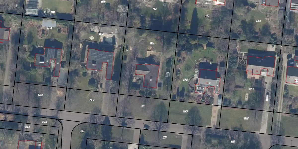 Het perceel waarop Wildbaan 9 staat heeft een oppervlakte van 1584 m². Dit is een zeer groot perceel. De perceeloppervlakte wordt geregistreerd door het Kadaster. Gedetailleerde informatie over de maten van dit perceel kunt u vinden in het rapport Kadastrale kaart met maatvoering van Wildbaan 9.