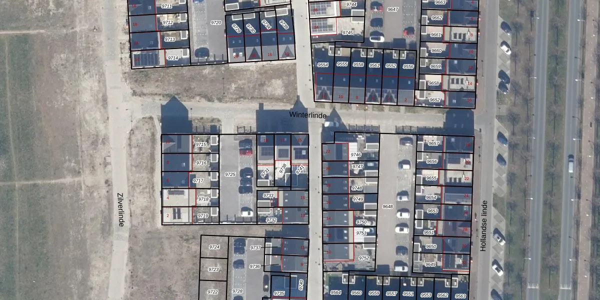 Het perceel waarop Winterlinde 15 staat heeft een oppervlakte van 110 m². Dit is een middelgroot perceel. De perceeloppervlakte wordt geregistreerd door het Kadaster. Gedetailleerde informatie over de maten van dit perceel kunt u vinden in het rapport Kadastrale kaart met maatvoering van Winterlinde 15.