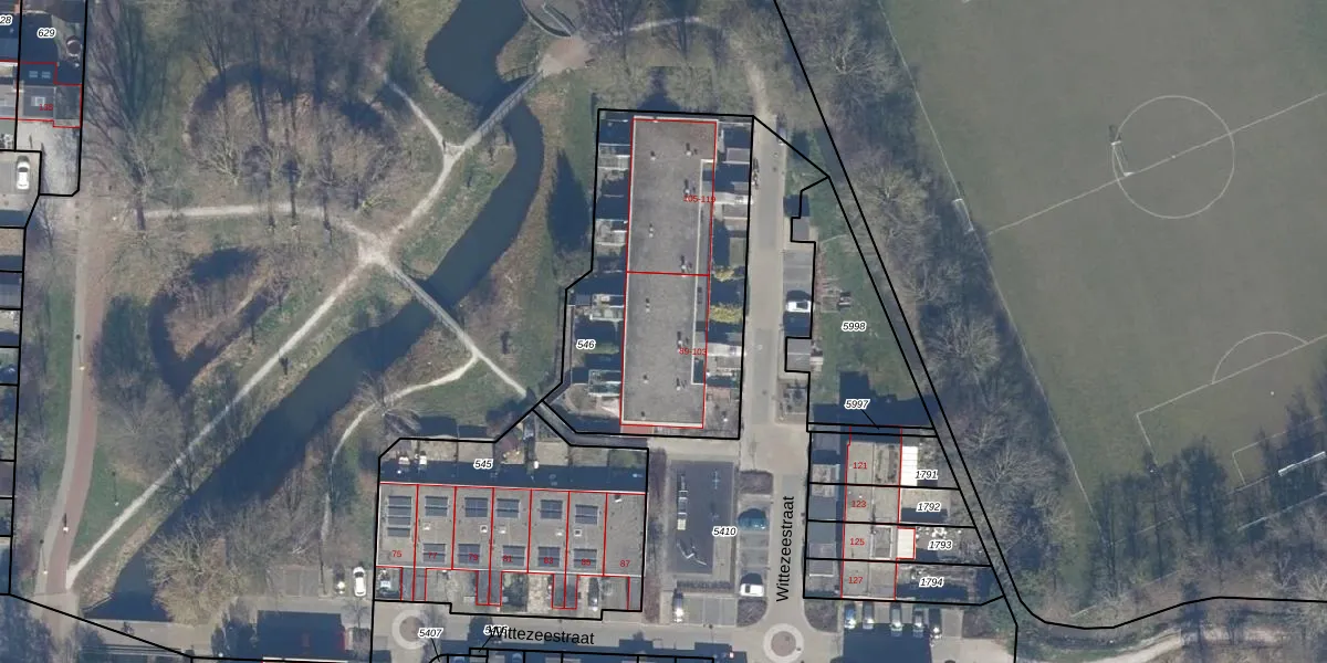 Het perceel waarop Wittezeestraat 101 staat heeft een oppervlakte van 1227 m². Dit is een zeer groot perceel. De perceeloppervlakte wordt geregistreerd door het Kadaster. Gedetailleerde informatie over de maten van dit perceel kunt u vinden in het rapport Kadastrale kaart met maatvoering van Wittezeestraat 101.