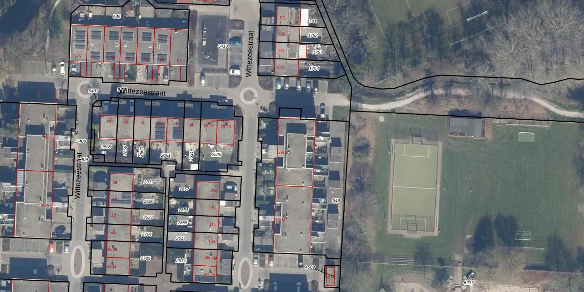 Het perceel waarop Wittezeestraat 143 staat heeft een oppervlakte van 1424 m². Dit is een zeer groot perceel. De perceeloppervlakte wordt geregistreerd door het Kadaster. Gedetailleerde informatie over de maten van dit perceel kunt u vinden in het rapport Kadastrale kaart met maatvoering van Wittezeestraat 143.
