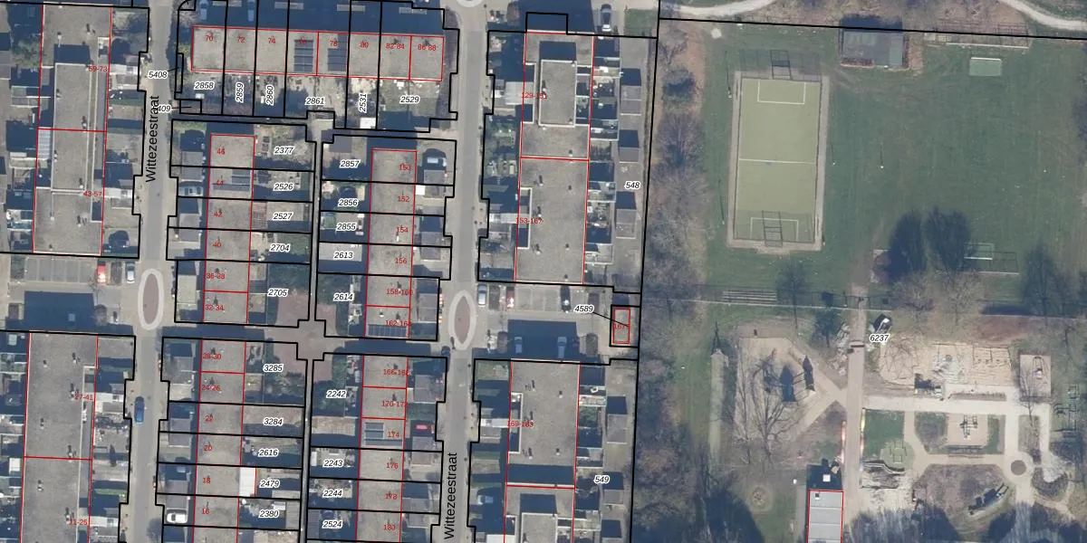 Het perceel waarop Wittezeestraat 163 staat heeft een oppervlakte van 1424 m². Dit is een zeer groot perceel. De perceeloppervlakte wordt geregistreerd door het Kadaster. Gedetailleerde informatie over de maten van dit perceel kunt u vinden in het rapport Kadastrale kaart met maatvoering van Wittezeestraat 163.
