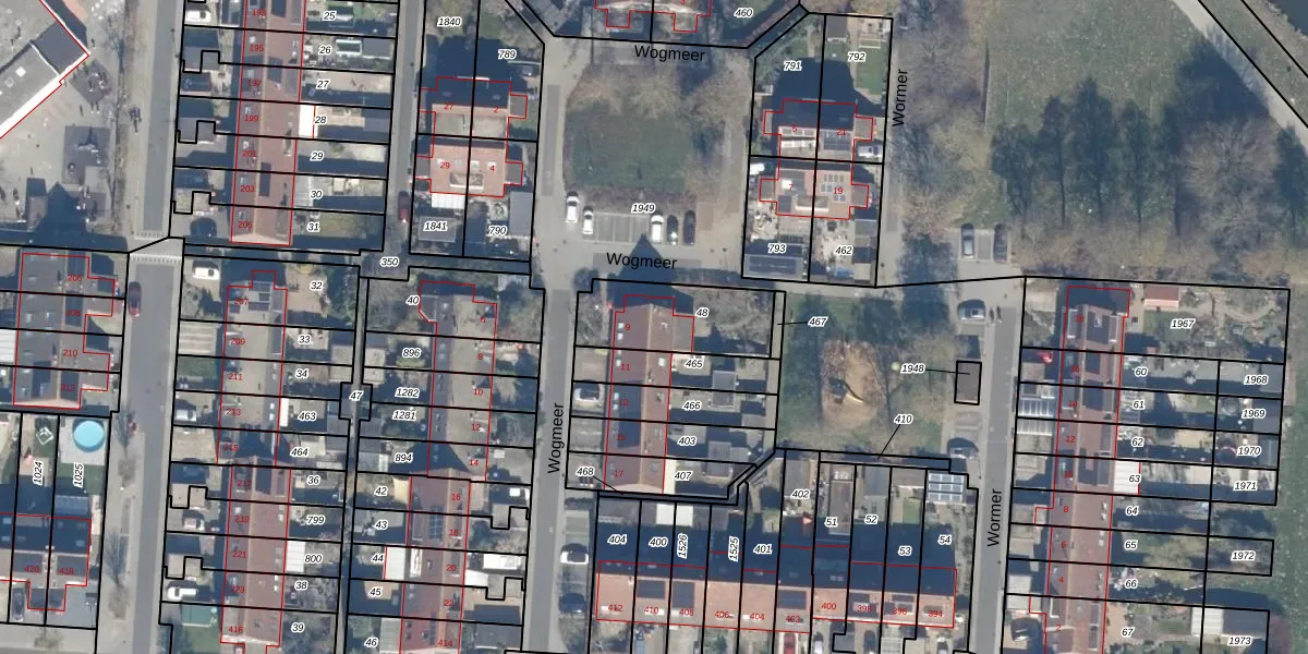 Gebruik de zoekbalk of klik op een perceel voor informatie over de adressen binnen dit perceel.
