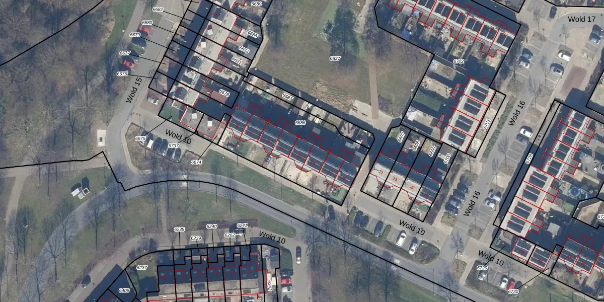 Wold 10 13 is gelegen op kadastraal perceel LLS00O6686. Deze kadastrale aanduiding is uniek en wordt gebruikt door het Kadaster om eigendomsrechten en andere zakelijke rechten vast te leggen. Het perceel maakt onderdeel uit van de kadastrale gemeente Lelystad.