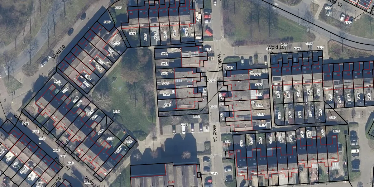 Wold 14 9 is gelegen op kadastraal perceel LLS00O2582. Deze kadastrale aanduiding is uniek en wordt gebruikt door het Kadaster om eigendomsrechten en andere zakelijke rechten vast te leggen. Het perceel maakt onderdeel uit van de kadastrale gemeente Lelystad.