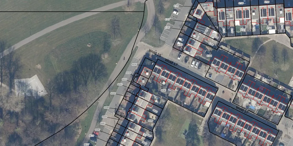 Gebruik de zoekbalk of klik op een perceel voor informatie over de adressen binnen dit perceel.