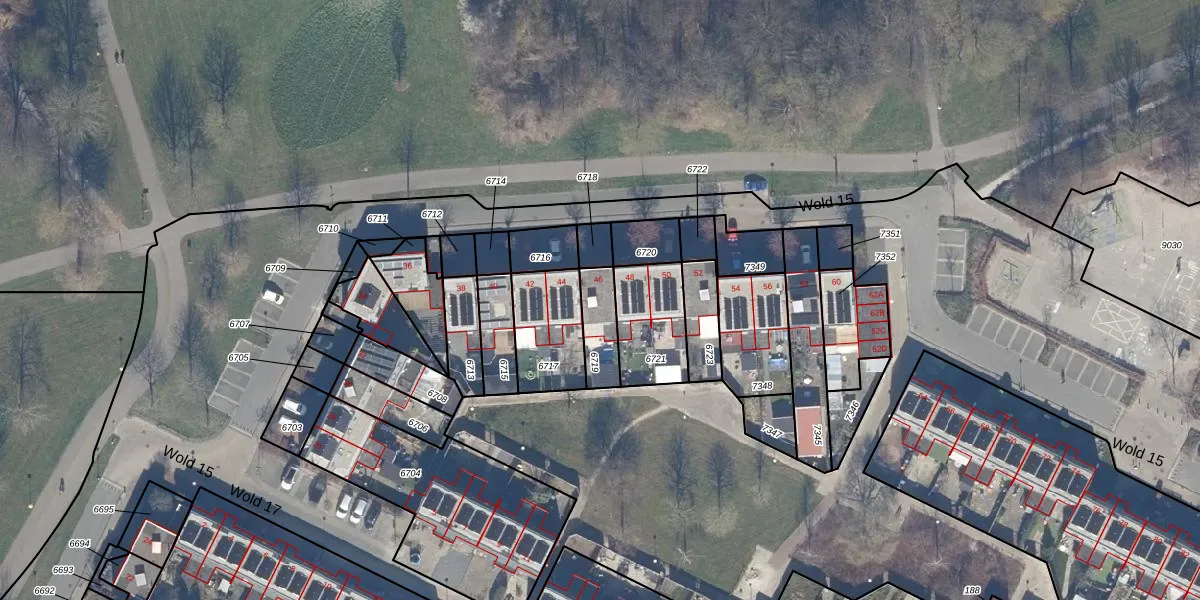 Gebruik de zoekbalk of klik op een perceel voor informatie over de adressen binnen dit perceel.