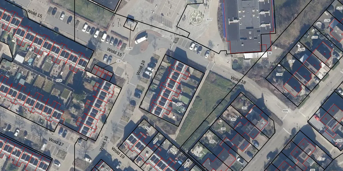 Het perceel waarop Wold 18 20 staat heeft een oppervlakte van 881 m². Dit is een groot perceel. De perceeloppervlakte wordt geregistreerd door het Kadaster. Gedetailleerde informatie over de maten van dit perceel kunt u vinden in het rapport Kadastrale kaart met maatvoering van Wold 18 20.