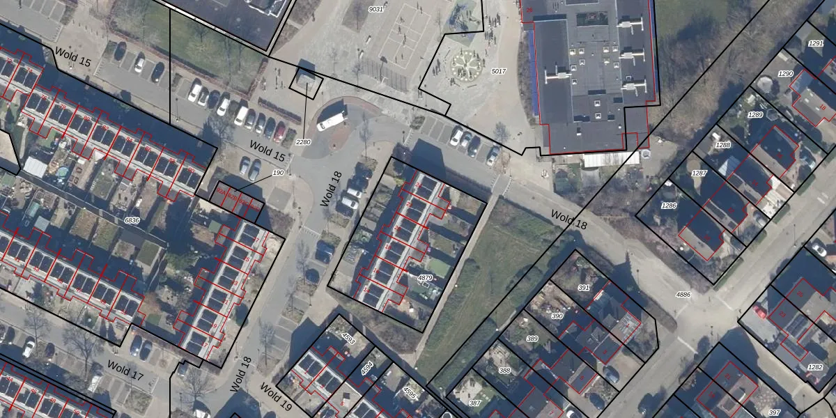 Het perceel waarop Wold 18 22 staat heeft een oppervlakte van 881 m². Dit is een groot perceel. De perceeloppervlakte wordt geregistreerd door het Kadaster. Gedetailleerde informatie over de maten van dit perceel kunt u vinden in het rapport Kadastrale kaart met maatvoering van Wold 18 22.