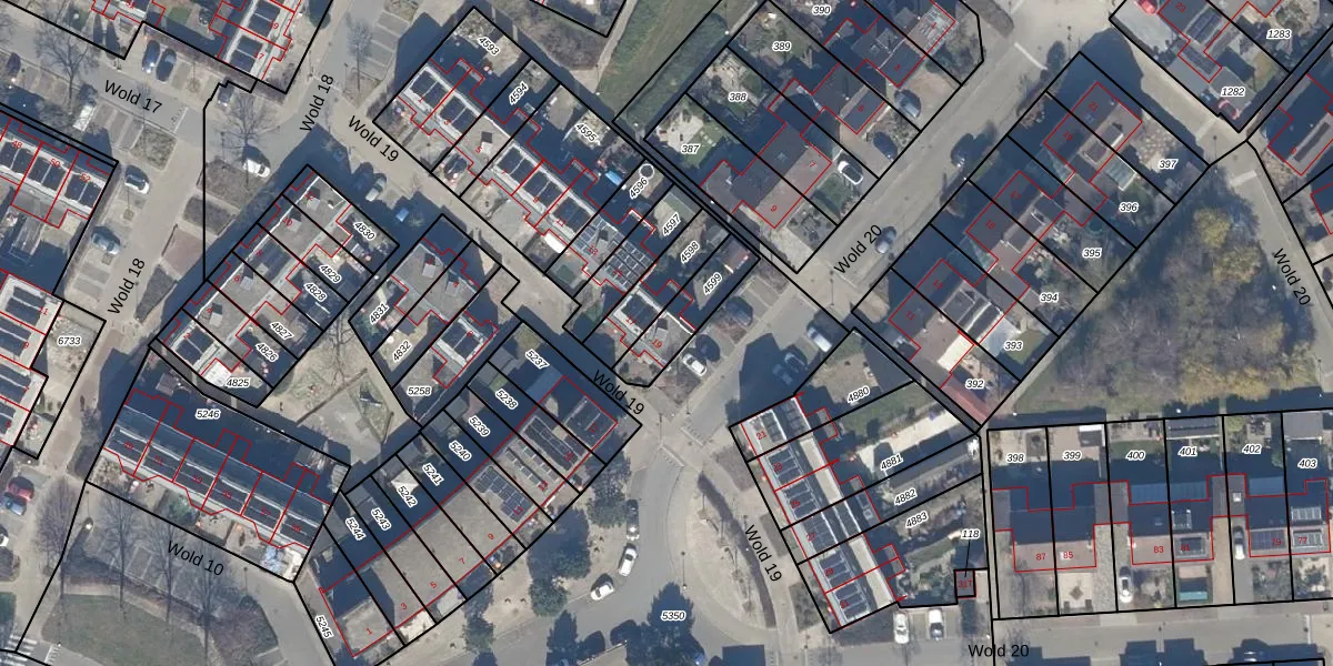 Gebruik de zoekbalk of klik op een perceel voor informatie over de adressen binnen dit perceel.