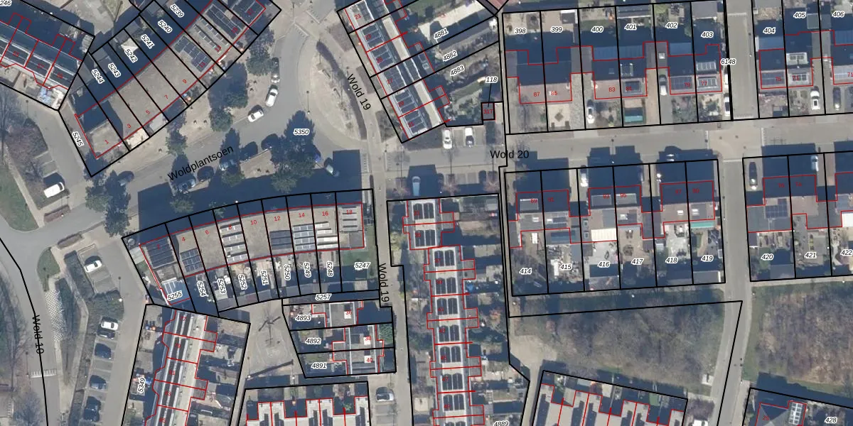 Wold 19 33 is gelegen op kadastraal perceel LLS00P4889. Deze kadastrale aanduiding is uniek en wordt gebruikt door het Kadaster om eigendomsrechten en andere zakelijke rechten vast te leggen. Het perceel maakt onderdeel uit van de kadastrale gemeente Lelystad.