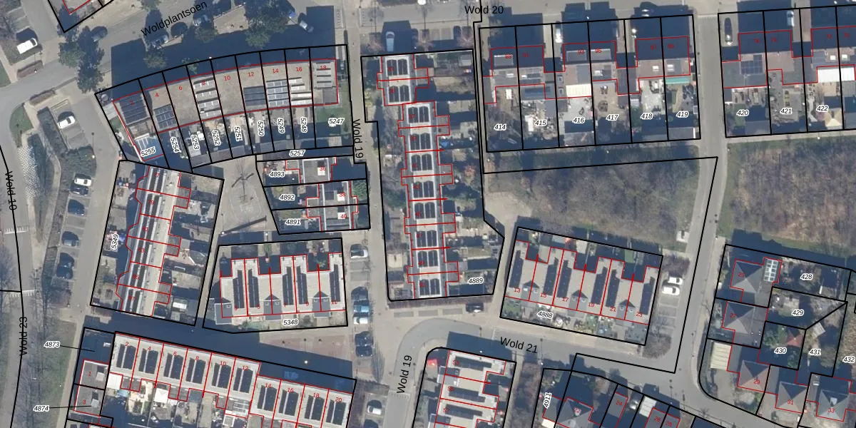 Wold 19 45 is gelegen op kadastraal perceel LLS00P4889. Deze kadastrale aanduiding is uniek en wordt gebruikt door het Kadaster om eigendomsrechten en andere zakelijke rechten vast te leggen. Het perceel maakt onderdeel uit van de kadastrale gemeente Lelystad.