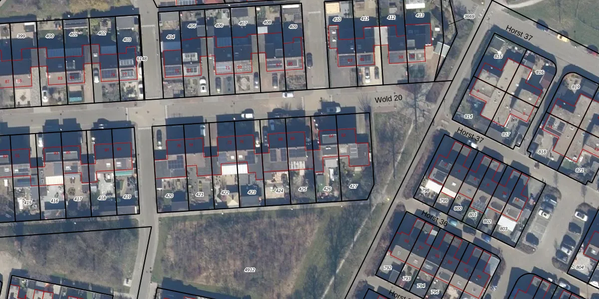Gebruik de zoekbalk of klik op een perceel voor informatie over de adressen binnen dit perceel.