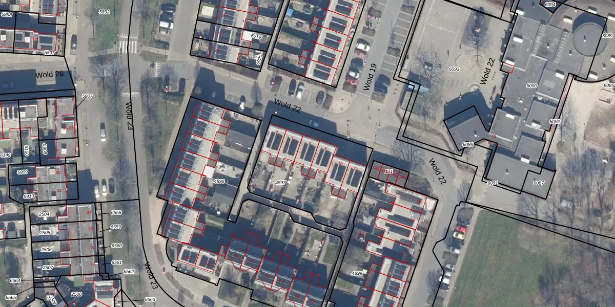 Wold 22 6 is gelegen op kadastraal perceel LLS00P4897. Deze kadastrale aanduiding is uniek en wordt gebruikt door het Kadaster om eigendomsrechten en andere zakelijke rechten vast te leggen. Het perceel maakt onderdeel uit van de kadastrale gemeente Lelystad.