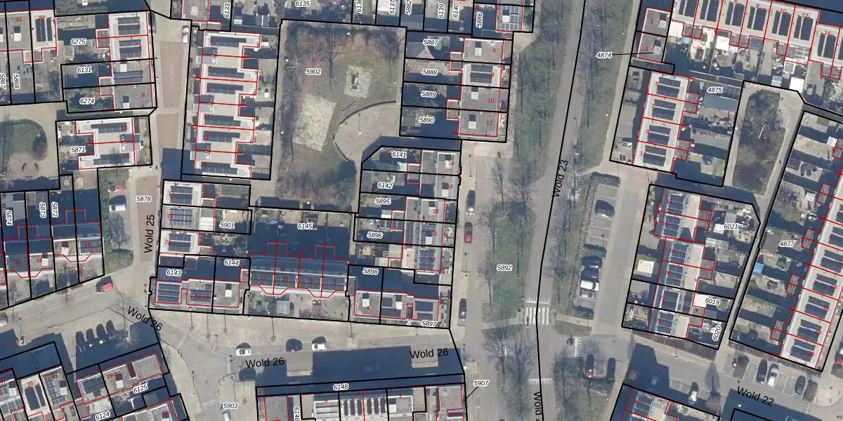 Gebruik de zoekbalk of klik op een perceel voor informatie over de adressen binnen dit perceel.