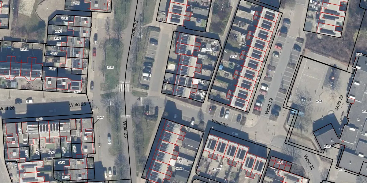 Wold 23 23 is gelegen op kadastraal perceel LLS00P6020. Deze kadastrale aanduiding is uniek en wordt gebruikt door het Kadaster om eigendomsrechten en andere zakelijke rechten vast te leggen. Het perceel maakt onderdeel uit van de kadastrale gemeente Lelystad.