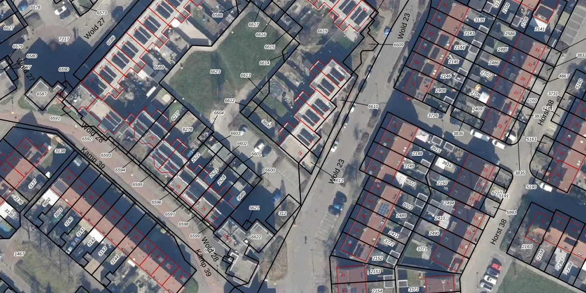 Gebruik de zoekbalk of klik op een perceel voor informatie over de adressen binnen dit perceel.