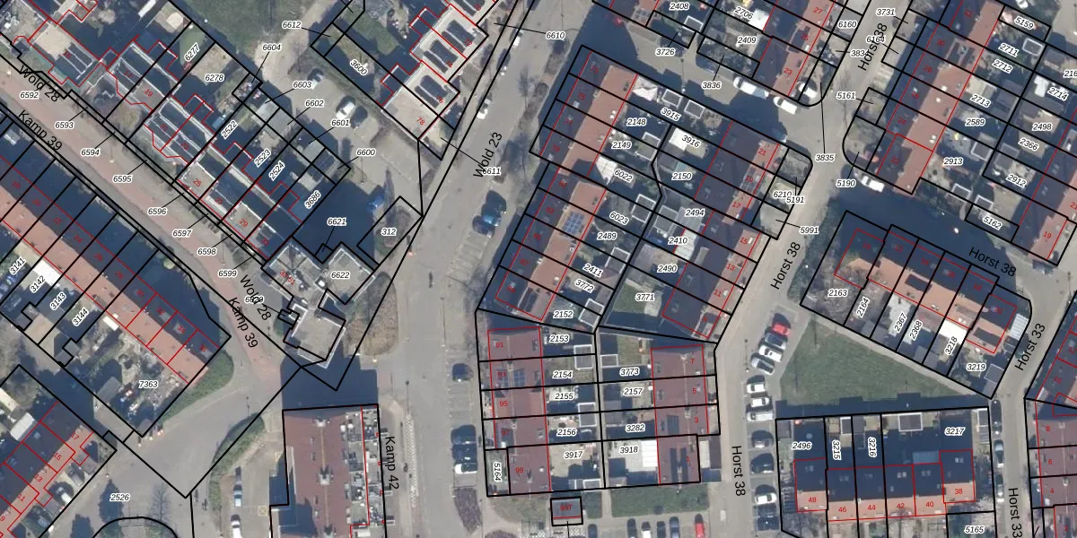 Gebruik de zoekbalk of klik op een perceel voor informatie over de adressen binnen dit perceel.