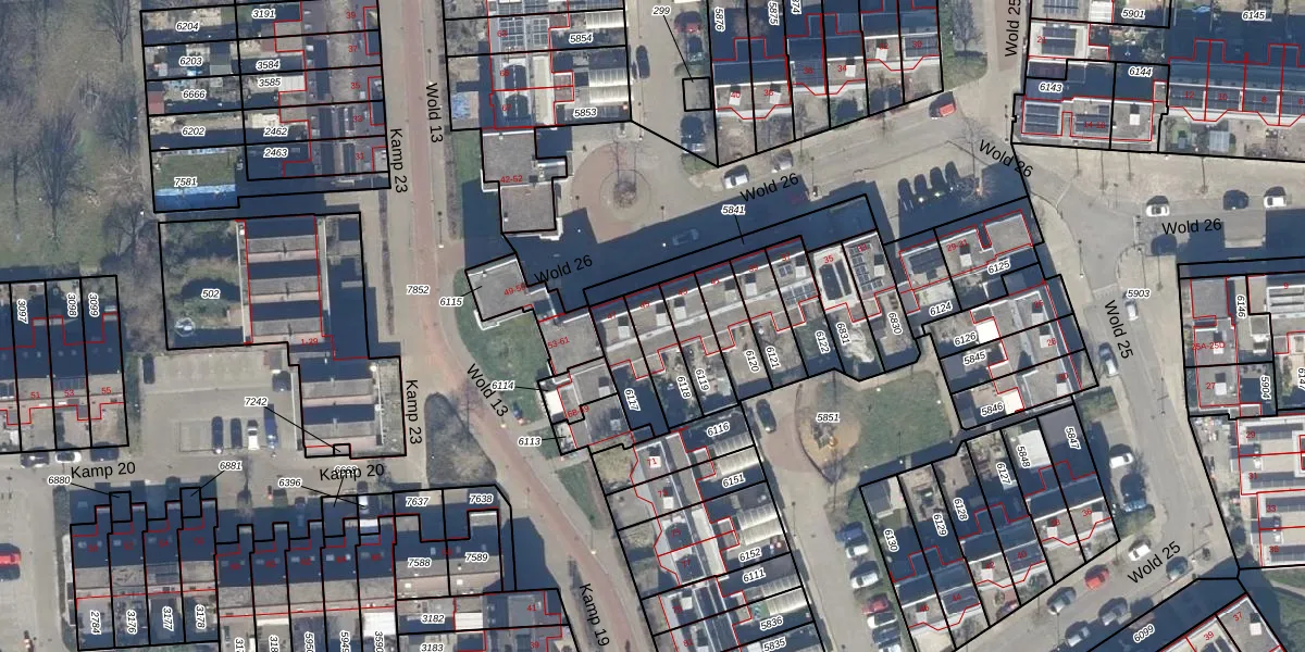 Gebruik de zoekbalk of klik op een perceel voor informatie over de adressen binnen dit perceel.