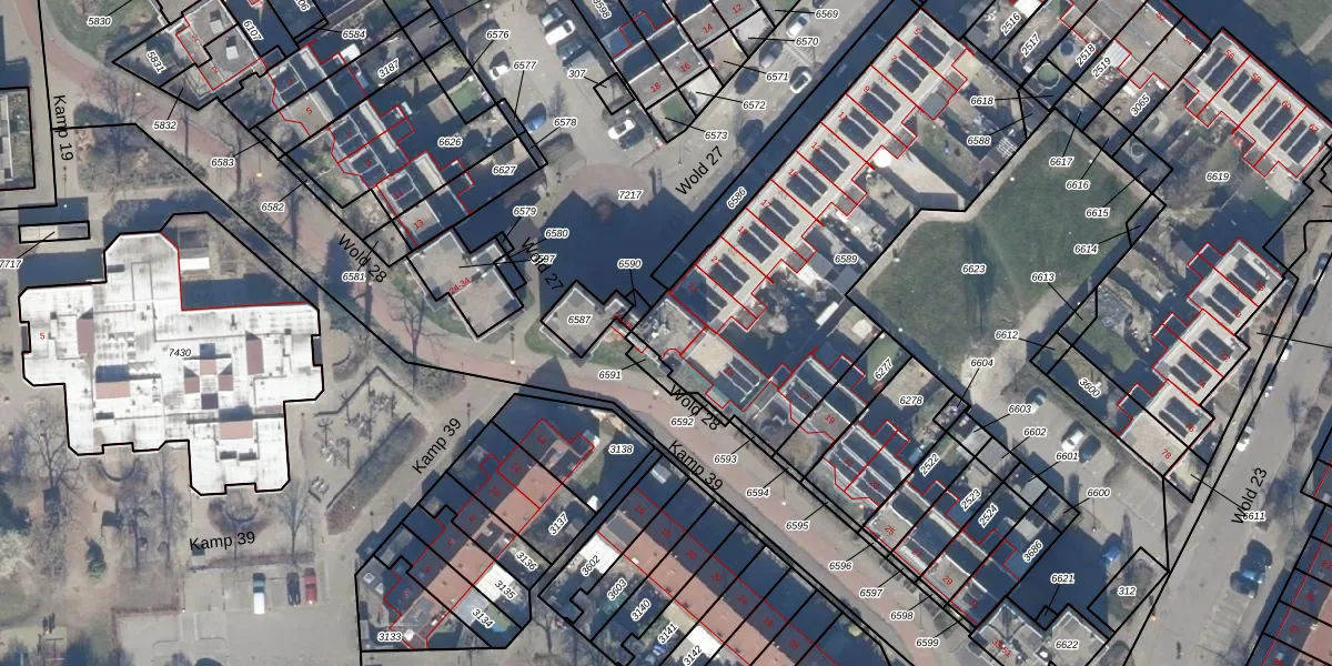 Het perceel waarop Wold 27 33 staat heeft een oppervlakte van 1612 m². Dit is een zeer groot perceel. De perceeloppervlakte wordt geregistreerd door het Kadaster. Gedetailleerde informatie over de maten van dit perceel kunt u vinden in het rapport Kadastrale kaart met maatvoering van Wold 27 33.