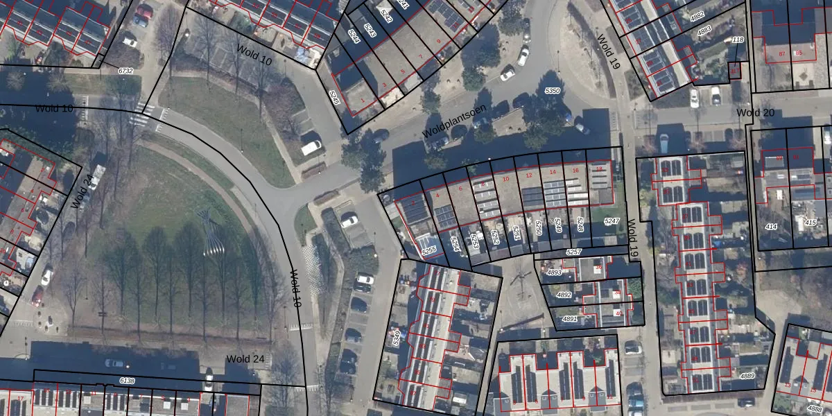 Gebruik de zoekbalk of klik op een perceel voor informatie over de adressen binnen dit perceel.