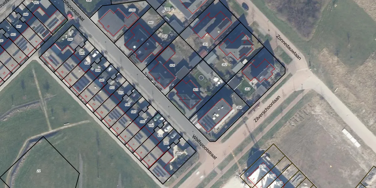 Gebruik de zoekbalk of klik op een perceel voor informatie over de adressen binnen dit perceel.