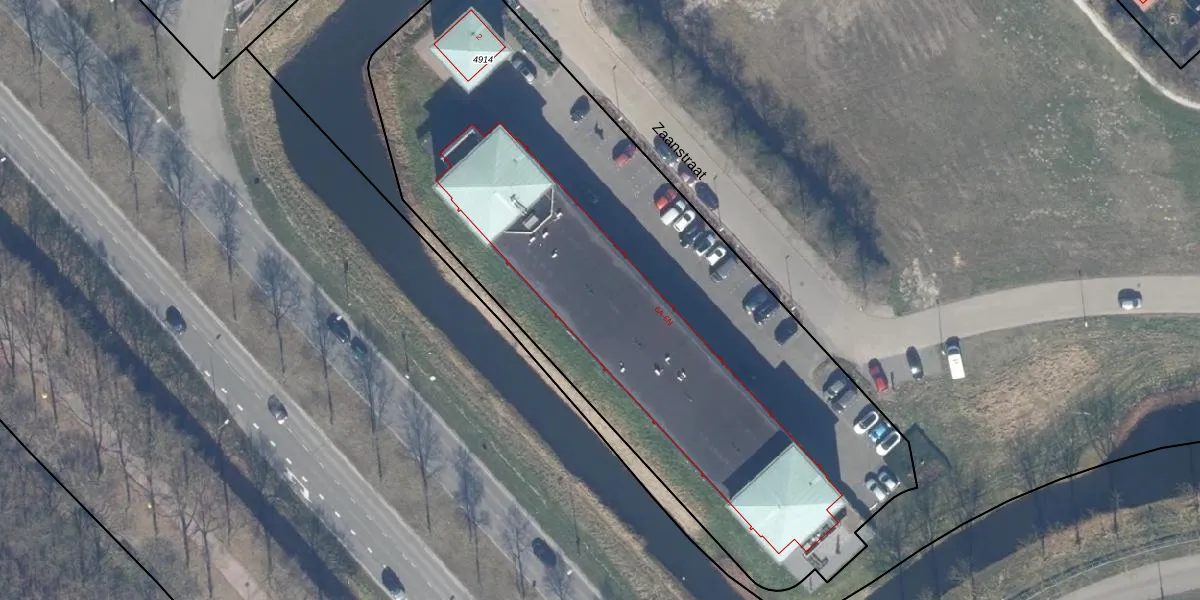 Het perceel waarop Zaanstraat 6-F staat heeft een oppervlakte van 3808 m². Dit is een zeer groot perceel. De perceeloppervlakte wordt geregistreerd door het Kadaster. Gedetailleerde informatie over de maten van dit perceel kunt u vinden in het rapport Kadastrale kaart met maatvoering van Zaanstraat 6-F.