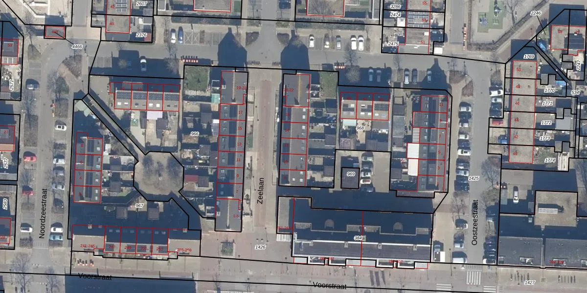Het perceel waarop Zeelaan 12 staat heeft een oppervlakte van 1874 m². Dit is een zeer groot perceel. De perceeloppervlakte wordt geregistreerd door het Kadaster. Gedetailleerde informatie over de maten van dit perceel kunt u vinden in het rapport Kadastrale kaart met maatvoering van Zeelaan 12.