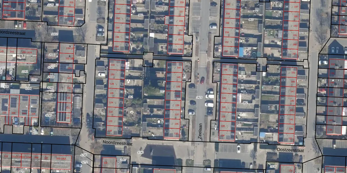 Zeelaan 143 is gelegen op kadastraal perceel LLS00P961. Deze kadastrale aanduiding is uniek en wordt gebruikt door het Kadaster om eigendomsrechten en andere zakelijke rechten vast te leggen. Het perceel maakt onderdeel uit van de kadastrale gemeente Lelystad.